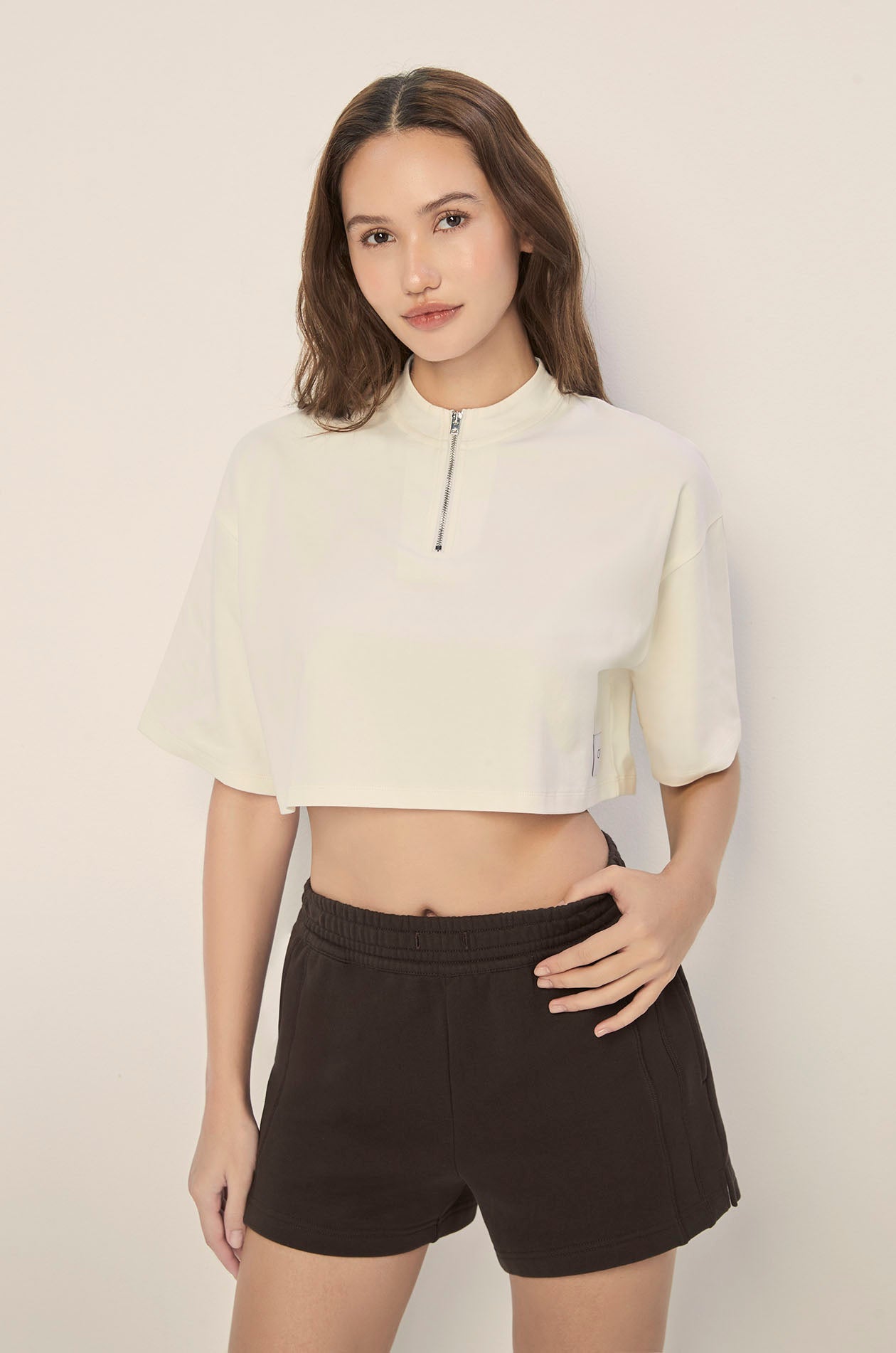 With a roomy fit and clean half-zip detail, the Stay Ready Oversized Half-Zip strikes the balance between sporty and structured. The thick jersey fabric gives it a soft yet substantial feel that holds its shape while staying breathable. A stand collar and dropped shoulders add modern ease, making it an easy layer to throw over any active set or casual look. When you want comfort with a little edge, this is the one.