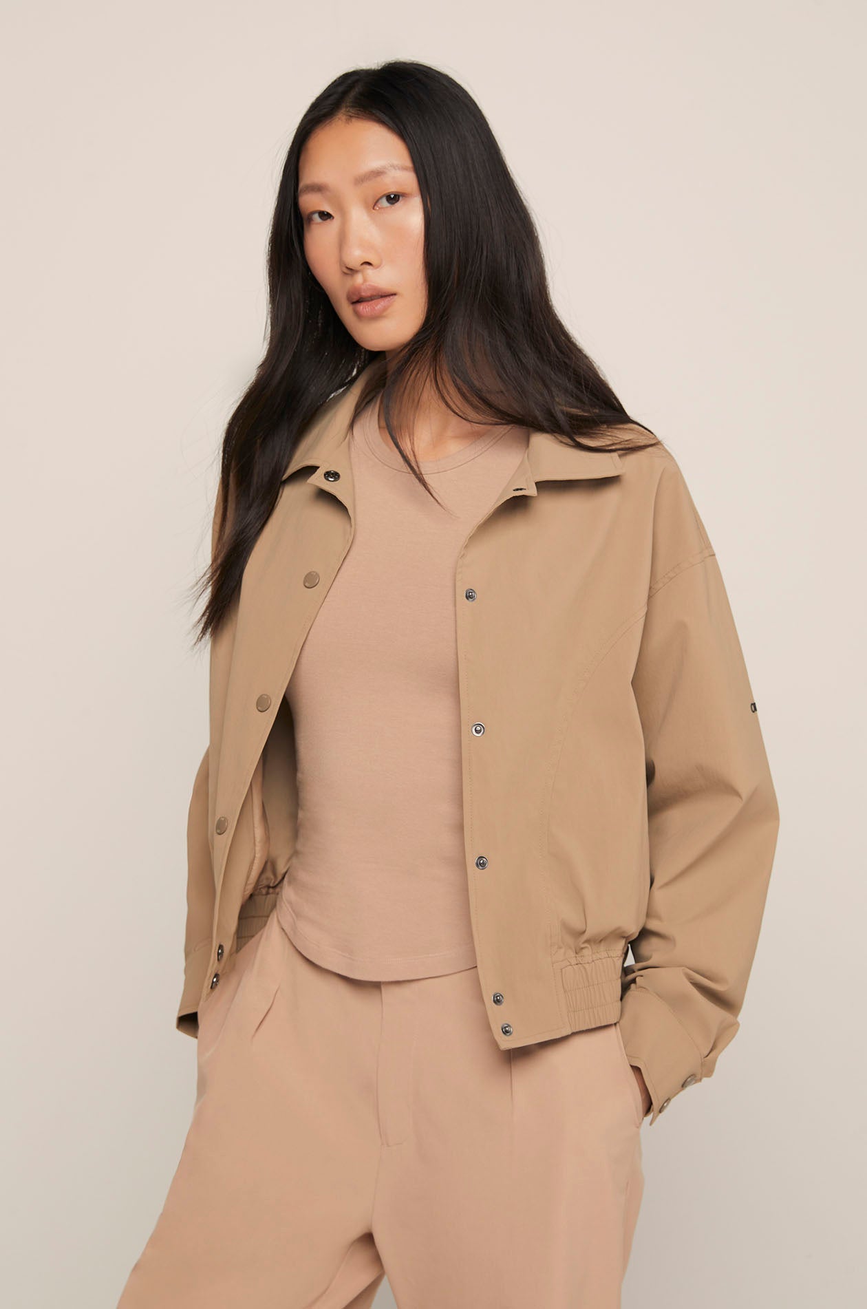 The Everyday Function Jacket blends timeless structure with modern function. Treated with a coated nylon finish, it repels light rain and stains while keeping a soft, breathable hand-feel. The silhouette is clean and refined with subtle detailing that balances utility and polish. Your everyday outer layer, designed to handle real life while looking sharp.